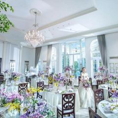 【こだわりとおもてなしを両立する開放的な披露宴会場】一面ガラス張りでプール付ガーデンと隣接した空間!美しい景色を眺めながら料理を味わう一軒家貸切だから叶う優雅なひとときを《少人数から大人数まで対応◎》