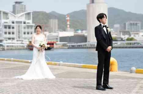 平日のウエディングだからこそ出来る事、朝はハーバーランドにロケーション撮影に行き、その後ゆったりとガーデン撮影。1日でたくさんのお写真を残したいお二人にとって結婚式は、その前後の時間も大切♪1日を使って後悔のないご結婚式を叶えれます。ファーストミート(新郎新婦様がお仕度後、初めて姿を見る演出)は、神戸の海の前で行いました。