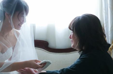 東北出身のご新婦様。社会人になってから関西でお過ごしになり、そのまま結婚をされることになったので、ご実家に帰ることも少なくなり、お母様とお会いできる機会も減ってしまったとお打ち合わせでお話してくださりました。挙式が始まる前にお母様と2人でいれるこの時間。たった10分ほどでしたが、ご新婦様とお母様にとってはかけがえのない時間になりました。
