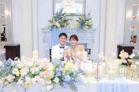 会場の雰囲気は春を感じるようなパステル調の色合いにまとめました。披露宴会場全体が真っ白の会場だからこそ、新郎新婦様のお好み、また新婦様のウエディングドレス・カラードレスに合わせて雰囲気を決めていくことが出来ます。ガーデンが併設されているため、外からは日が差し込み、すごく明るく開放感のある会場となります