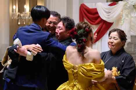 カラードレスは新婦様のずっとあこがれだった美女と野獣のモチーフになっております! 装飾は赤バラを使用しコンセプトに合わせてコーディネートしております。イエロードレスも映え、ゲストからも「かわいい」と感想を沢山いただきました! 結びの際照明が暗くなりより一層雰囲気が出ておりました。またラストセレモニーでは親御様の温度感も高まり新郎新婦様を抱きしめる姿が印象的でした