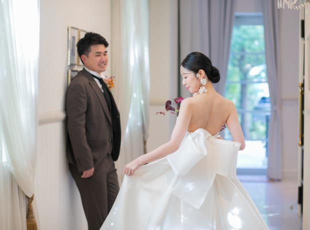ご遠方にお住いのお二人だった為お打ち合わせのほとんどをオンラインで行わせていただきました!いつも穏やかで笑いも含んでくれるお二人でしたので毎回のお打ち合わせが本当に楽しみで仕方なかったです! お花のお打ち合わせはご来館にて進めましたのでフローリストと雰囲気やこだわりを直接相談しこだわりいっぱいの装飾になりました!