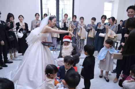 季節に合わせてオシャレクリスマスカラーをテーマにカラークロスなどお選びいただきました。新郎様がサンタクロースに変身しお子様にプレゼントを配るなどとってもユニークで素敵な演出も取り入れておりお子様も大喜びっ!その他もケーキ入刀やサプライズバイトなどゲストと過ごすお時間を大切に披露宴をつくっていきました。