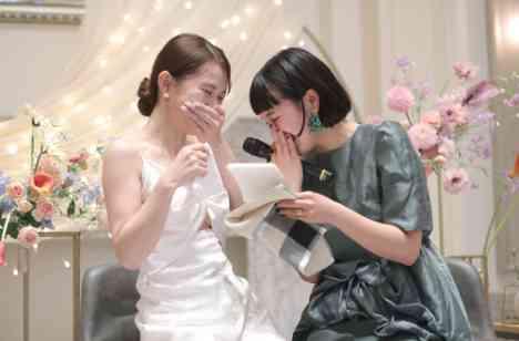 新婦様からとっても大切なご友人とお伺いしていた為 ぜひ近い距離でスピーチをしていただきたくメインソファー席でのお時間をご提案いたしました。ご友人からのメッセージを近くで聞いた新婦様は思わず涙が溢れ会場全体が暖かい空間に包まれました。また背景の装飾もお二人のこだわりがつまり、より一層素敵なお写真も残せました!