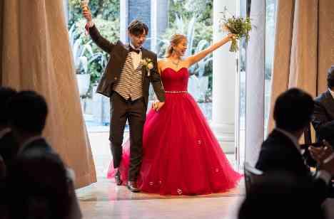 華やかなドレスでガーデンサプライズ入場!