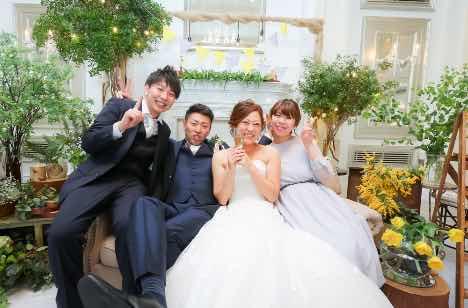 近い距離で楽しみたい。そんなご要望にお応えしての、ソファー席。 ゲストと隣で写真を撮ったり、乾杯したり。 実は友人スピーチも隣に座って読んでいただきました。 人気の装飾ですが、可愛いだけでなくより温かい時間が流れる装飾でもあります