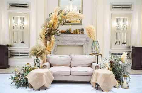 ご新婦様のこだわり、ドライフラワーを使用したメイン装飾!フラワーコーディネーターと相談して、お洒落なメイン席に。ゲストテーブルもブーケもお揃いの雰囲気で! ウェルカムスペースの雰囲気も統一感があって、ご新婦様の雰囲気にピッタリでした!