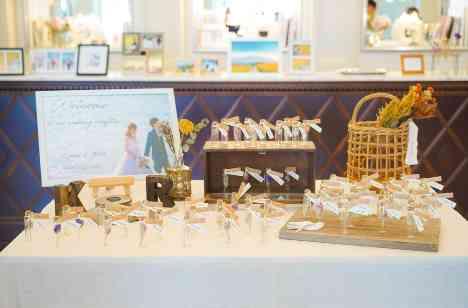 装飾に合わせた雰囲気で、ご新婦様が作られたエスコートボトル。挙式が終わるとロビーに設置されていたコーナー。貸切ならではの、演出ですね。友人の「可愛い」の声とともに、ワクワクしながらゲストは自身のお名前を探していらっしゃいました。