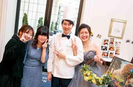 ご新郎様が、シェフの恰好に扮して登場!おふたりからのおもてなしとして、デザートブッフェのご用意。デザートもオリジナルでゲストから「可愛い!」の声が。年代問わずに喜んでいただけるデザートをご用意。シェフ姿の新郎様は人気でした!