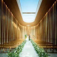 【天窓から陽光が降り注ぐ*生まれ変わったチャペルで特別な誓いを】花嫁が佇むだけで美しい絵になる木に拘った世界観が話題!併設ガーデンから木漏れる自然光で写真を美しく残して《1軒目なら挙式料25万円優待》