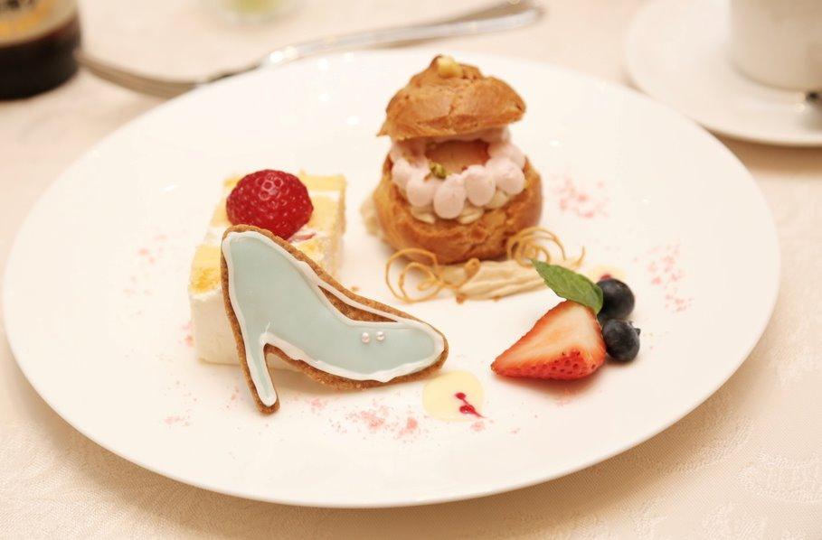 デザートまで演出としてシンデレラの空間を表現しました。 お打合せの中で、シェフと相談をしゲストの皆様に楽しんで頂けるデザートを一緒に考えました。 ガラスの靴とカボチャの馬車を、デザートプレートに演出をしました。 世界にたった一つのオリジナルデザートです。