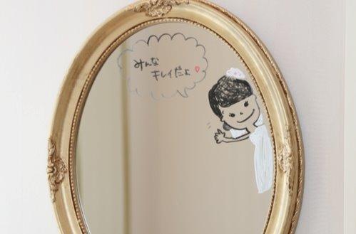 会場は1組で貸切れるので鏡にまでメッセージを!ゲストへのサプライズになりました