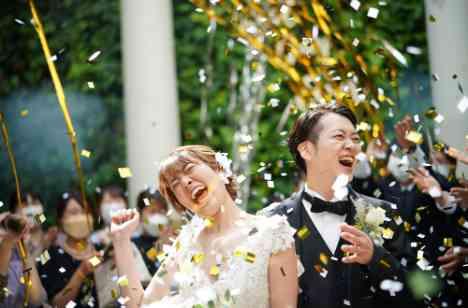 祝福の『一斉フラワーシャワー』