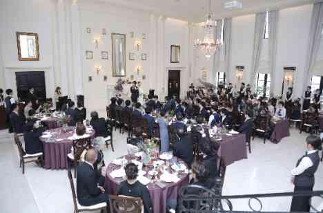 みんなに笑ってほしい、ゲストの方も見たことないようなサプライズで笑顔になってほしい、そんな想いがあったおふたりは会場内の世界観である美女と野獣をモチーフにご入場されました。 これにはゲストの方もびっくりな驚きと笑い、笑顔に包まれました。おふたりからのエンターテイメントはその後も続き、ロビーでのデザートブッフェにて楽しいひとときを過ごされました。