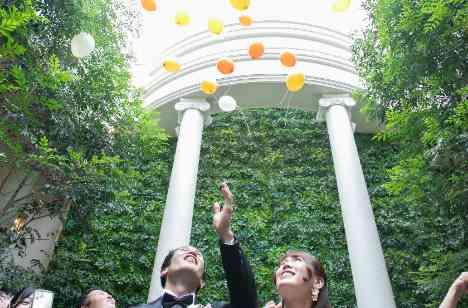 挙式と披露宴の間のアフターセレモニーのお時間では、よりゲストの方に楽しんでいただけるよう、野球トスにバルーンリリースを行いました。より一体感がでるよう、全員での六甲おろしの歌唱に合わせての野球トスは全員が盛り上がった時間でした。バルーンリリースでは、新婦様がメッセージを書かれたバルーンと一緒にそれぞれの想いを込めて空へと飛ばしました。