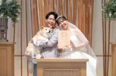 形式ばった感じではなく、カジュアルでアットホームな挙式をやりたい。そして大切なゲストの皆様と、大好きな愛犬のわんちゃんに証人になってほしい。そんな想いから人前式を選ばれました。挙式の中で愛犬のわんちゃんには、リングドッグを行っていただき、結びではおふたりの大切な結婚証明書にサインもしていただきました。世界にひとつだけの結婚証明書。おふたりの宝物になりました。