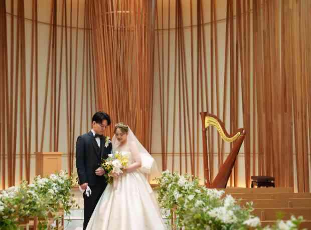 式場見学した時から、開放感と温かみが大好きになったチャペル。ゲストとの距離感ちょうどよく、アットホームにしたい二人にとっては大切に選びました。挙式は、自分たちのことをもっとゲストの方に知ってもらうことが出来た時間です。挙式前のファーストミートや、家族との時間もとても温かな気持ちになれる時間で幸せでした。