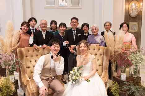 ゲストの皆様とお話することを大切にされていたおふたり。 ゲストの皆様がおふたりのお席に来る形で記念写真を撮り、ご歓談をお楽しみいただきました! ラウンドするのではなく、ゲストの皆様にお席に来ていただいくことでゆっくりとお話をすることができました。 お打ち合わせでイメージしてくださったお席で華やかなお写真を撮ることもできました!