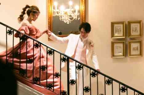 カラードレスでの再入場は、大階段を使ったロマンチックなシーン。手を引かれて降りてくる姿がプリンセスのようで、全員の視線を釘付けにした。さらに、新郎が新婦へ宛てた手紙を朗読する場面では、目頭を熱くするゲストも。クライマックスが近づくにつれて、大きな感動が会場を包んだ。「エンディングを当日の撮って出しムービーにしたら、感動的だったとゲストも喜んでくれました」。