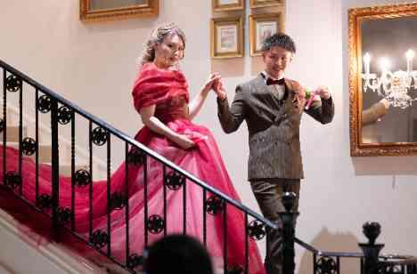 披露宴会場への入場口が3カ所あるので、ゲストへのサプライズ入場が可能でした。メイン扉と、大階段と、ガーデンからと自分たちの好みで選択できるのがよかったです。また、お色直し入場で大階段を使用したのは正解でした。ウェディングドレスは挙式でみんなに見てもらっていたので、カラードレスで大階段を降りることで、ドレス姿をみんなに見てもらうことがでました。