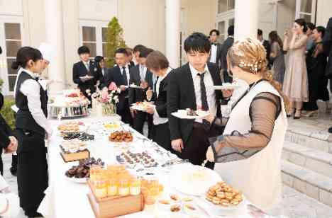 会場の真ん中にあるガーデンはとても広くて開放感抜群!施設の中心にある為、とても解りやすく移動時間も全くかからない導線が最高の会場です。なので、デザートブッフェも取りに行きやすくてゆっくりと過ごしてもらうことができました。たくさん会話をしたり、写真を撮影したりと、とてもいい時間を過ごすことができ、みんなも喜んでくれていたので、やってよかったなって思いました。