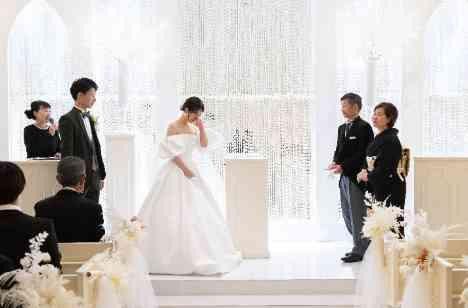 オリジナリティのある結婚式がしたくて、人前式を選びました。披露宴での定番の演出、お手紙の朗読を、私たちは挙式会場でおこないました。読み始めた瞬間、思いがあふれて涙がとまりませんでした。お母さんの表情をみると、お母さんも泣いていて、さらに私も泣いてしまいました。チャペル内のクリスタルや、雰囲気も相まって、とても素敵な時間になりました