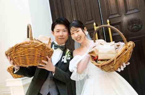 挙式がおわって、披露宴が始まるまでの間の時間で、お菓子まきをしました!人数分以上のお菓子を大量に準備しました。カゴは会場からも貸し出しがありました。当日は思っていた以上に大盛り上がりで、激しいつかみ取りになっていました!大人から子どもまで参加できる演出です。ゲストには袋を準備して、取ったお菓子はプレゼントしました。