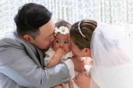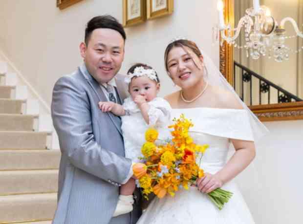 挙式時間でご新郎ご新婦様のお子様にとって思い出に残る挙式にしたい。その思いを汲み取り、入退場をお子様と一緒に行ったり、リングガールちゃんをして頂いたりしました。挙式時間の一番の見所は、お子様をご新郎ご新婦様の間に挟んで行うファミリーキス。この様子を見たゲストの皆様が自然と笑顔溢れる温かい空間になりました。