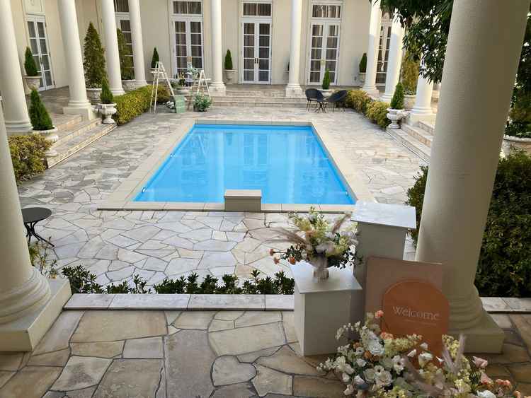 とても綺麗で感動しました。 吹き抜け天井・屋内プールがあり、開放感のある会場でしたので、アットホームなしきができそうです。