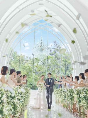 天井高10メートルとガラス張りのチャペルは光が差し込み自然との調和を感じながら、二人の新たな始まりを祝福し、神聖な誓いの場をより印象深くします。