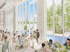 緑や水辺が広がるリゾートのような披露宴会場はゲストとの記念撮影も映える