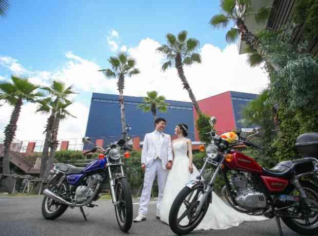 私たち夫婦はおそろいのバイクに乗っており、それを会場に飾ることが夢でした。 ホテル型の式場だとバイクの持ち運びはNGでしたが、ララシャンスだと独立したゲストハウスのため融通が利き、また、テラスがあるため会場を汚すことなく飾ることができました。 前撮りのときもバイクと一緒に撮影することができ、とても満足です。