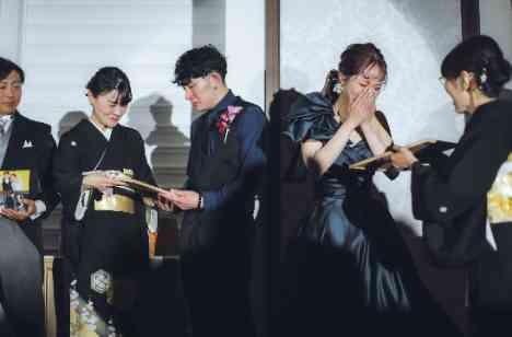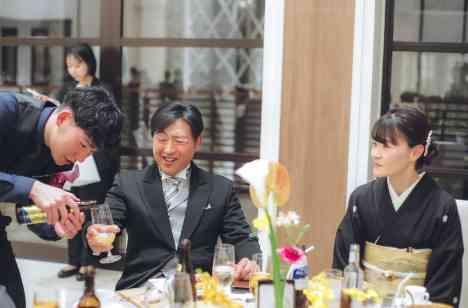 両親を感動させて泣かせたい! ゲストの方にお酌して話したい! 自分たちも全力で楽しむ! 家族に感謝を伝えたい。そんな思いから、サンクスムービーと手紙付きのパネルを準備しました。ゲストの方々にお酌しながら、近い距離でお話しすることができ、私たち自身、終始笑顔で楽しめたと思います。ゲストの方とたくさん写真を撮ることができたのは、一生の宝物です。