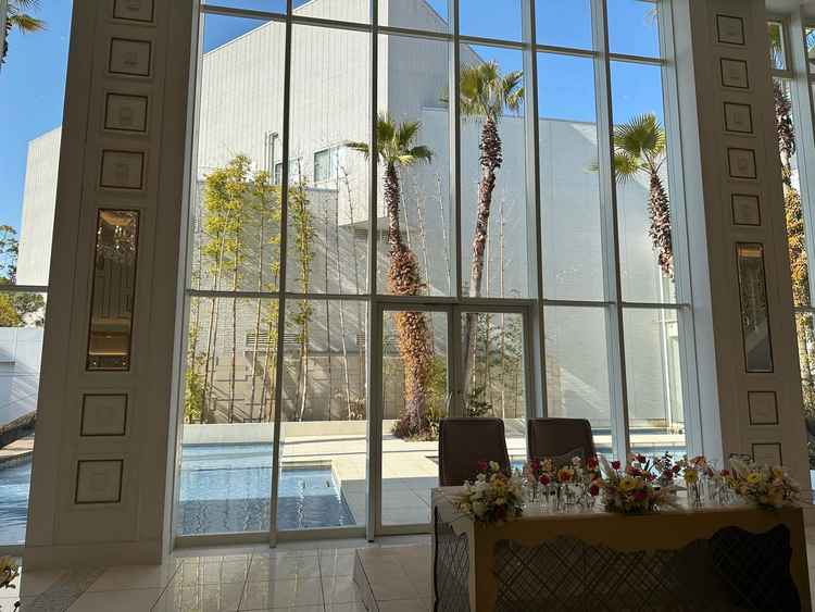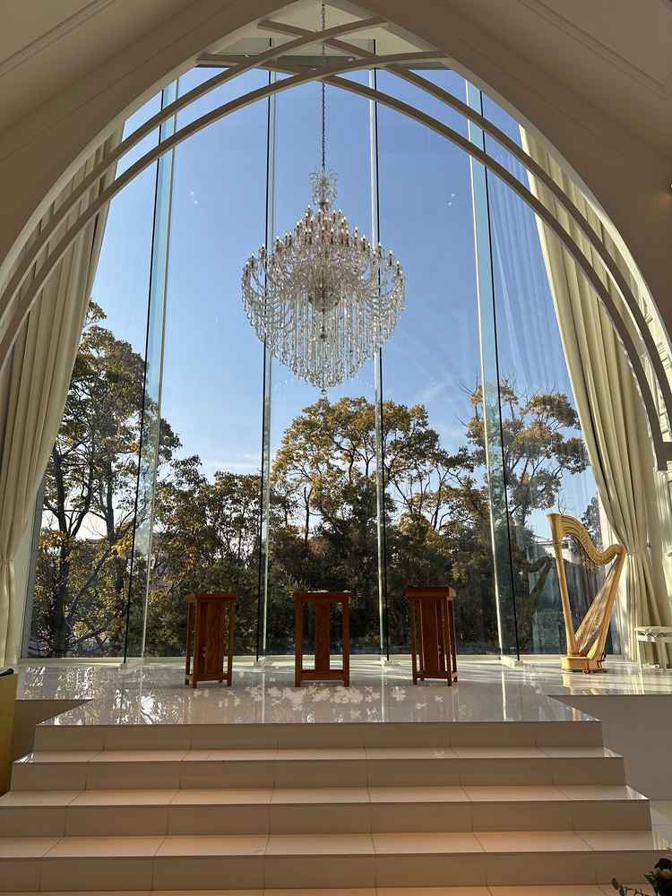ガラス張りのチャペルと披露宴会場がマッチしていた