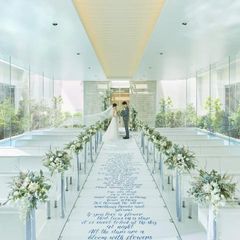 【当館卒花*支持率No1!県内唯一の水上チャペル】水・光・緑に囲まれた独立型チャペル。三面ガラス張りの自然光溢れる洗練空間。水音が聞こえる神秘的なチャペルで五感で感動を体験!《成約特典:挙式料無料》