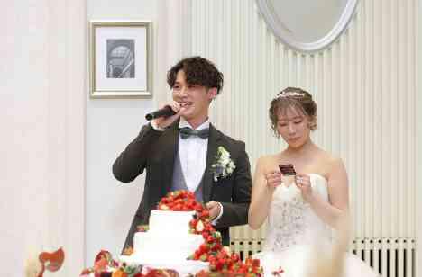 イチゴで溢れた幸せのウェディングケーキは、ファーストバイトだけでなくゲスト様にもお召し上がりいただくことに。ご来館時にチェキを撮ってメッセージを書いてもらった写真をくじ代わりにして、誰も知らないドキドキの演出でございました。選ばれたのはご友人様で、嬉しくて笑顔が思わずこぼれる新郎様の表情と、メッセージを読んでいる新婦さん。チェキは記録にも残るので素敵な演出でした。