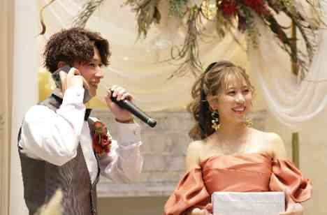 こちらもゲスト様を巻き込んだ演出でした。ご来館時に携帯番号を書いていただきBOXへ。 新郎新婦様がランダムでくじを引き、その番号へサプライズコール!静まり返った空間で電話のコール音が鳴ると大盛り上がりの演出でした。選ばれしゲスト様へは、新郎新婦様からプレゼントをお渡しいたしました。参加型の演出はどの層のゲスト様にもお喜びいただけるので大人気です。
