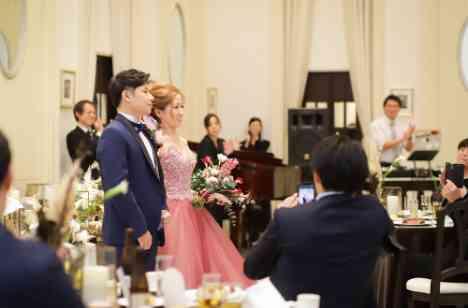 披露宴の際の曲にもこだわってくださったおふたり、ロビーやガーデンに流す曲もたくさん考えてくださいました。その中でもこだわられたのがお色直しのご入場の際のDJブースでのパフォーマンスでした。ご入場の前にご友人がDJブースでパフォーマンスをしていただき会場を盛り上げてくださり、そのままおふたりにご入場いただきました。おふたりもゲストも大盛り上がりの素敵なお時間になりました。