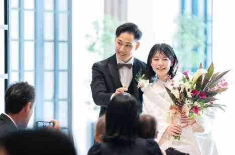 挙式はキリスト教式で行ったおふたり。新郎様は親御様からジャケットセレモニーを行っていただき、送りだしていただきました。また洗練されたインポートドレス姿がとても素敵な新婦様、ご入場の前にはチャペルにいらっしゃるゲストにも聞こえるように天国のお父様へのお気持ちを伝えるお手紙をお読みいただきました。そのお手紙の後にご入場となり、皆様に温かいお気持ちで迎えていただきました。