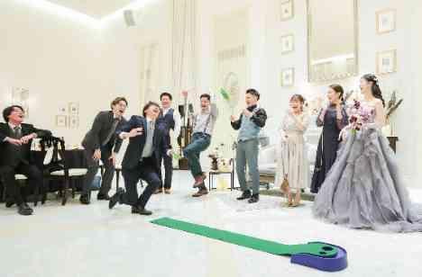 ゲストの皆様で楽しめるイベントをやりたいと考えていたおふたりにご提案をさせていただいたのが、【パターゴルフ対決】でした。代表者を発表いただき経験者も未経験者も楽しんでいただけるように打つ道具はくじ引きで選んでいただきました。結果、見てくださっているゲストもご参加いただいたゲストも大盛り上がりの楽しいひと時になりました。