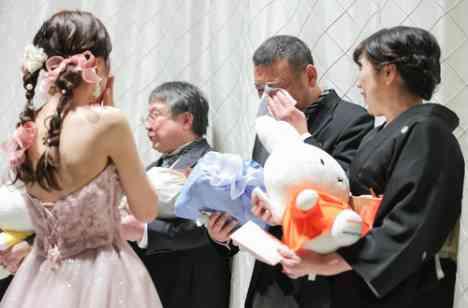 ご家族への思いを伝える方法は様々です。 おふたりは写真を通して小さい頃のことを 思い返しながら感謝の気持ちを伝えたいと 選ばれたのがムービーでした。 おふたりにとって大好きなかけがえのないご家族様に 想いを伝えられて会場中が涙に包まれました。 生まれた時の重さのウェイトベアをお渡しし 親御様はその重さをかみしめていらっしゃる様子でした。