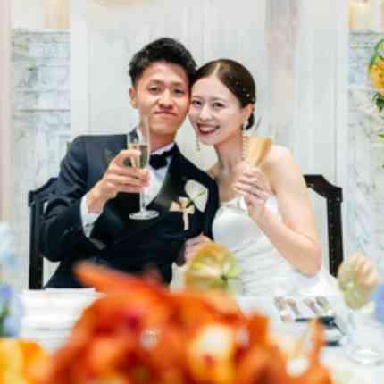 共通のご友人が多かったおふたりだったので 和気あいあいとしたおふたりらしいお時間が流れました。メイン席をチェアスタイルにすることによって おふたりの元に行きやすく、またおふたりからも 招くことができるような距離感でアットホームに お過ごしいただけました 常にたくさんのゲストに囲まれた時間でした