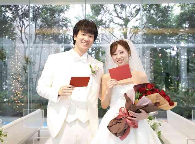 決まりきったスタイルではなくおふたりらしい式にしたいと人前式を選ばれたおふたり。誓いの言葉はお互いのことをよく知るご友人からいただくことになりました。ご新郎友人はご新婦へ、ご新婦友人はご新郎へと投げかけをしていただき、エピソードを交えて誓いの言葉を考えていただきました。おふたりはもちろんのことゲストの方も心温まる時間となりおふたりのことをより深く知れる時間となりました。