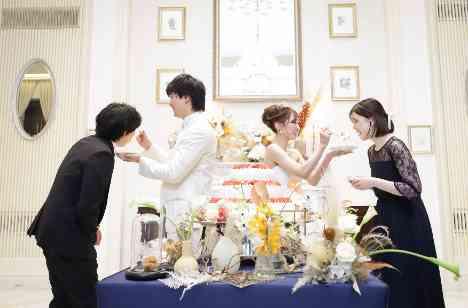 ゲストに楽しんでいただくためにという思いを中心にお打合せの中でも進行を考えていました。 その中でも、招待状の返事でメッセージが一番長かった方へのサプライズバイトを進行に取り入れたおふたり。ゲストの方もまさか選ばれると思っておらず驚いた様子!たくさんのゲストの方が楽しそうにケーキを囲みながらサプライズバイトを見守ってくださいました。