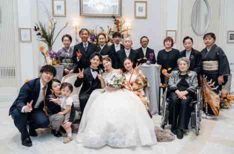 メイン席に集まった親族の皆さまの笑顔があたたかな空気をつくり出した一枚。 育ててくれた家族、支えてくれた親族に囲まれながら過ごすこの時間は、おふたりにとって何よりの安心と喜びです。 形式ばらず自然体で並ぶ姿から、これまでの絆とこれから始まる新しい家族の物語が、静かに、そして確かに伝わってきます。
