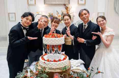長年ともに歩んできた両家の親御様が、お手本のようなケーキバイトで会場を和ませてくれました。 照れながらも息の合ったその姿に、ゲストからは自然と笑顔と拍手が広がります。 夫婦として、家族として、寄り添い続けてきた時間がその一瞬ににじみ出て、おふたりの未来をそっと後押ししてくれる、あたたかなシーンとなりました。
