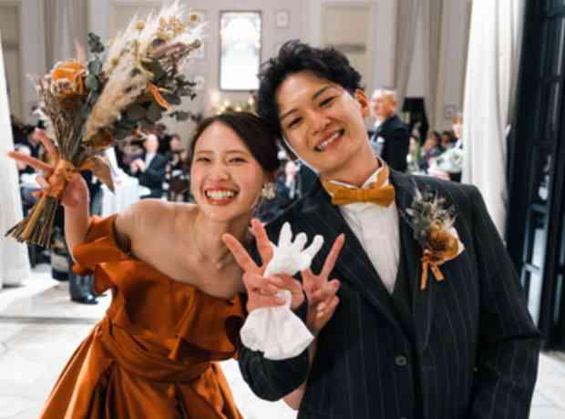 ゲスト一人ひとりの想いが、小さなレゴピースとなって集まり、世界にひとつだけの結婚証明書に。 色も形も違うピースが組み合わさるように、様々な人とのご縁がこの日のおふたりを創っています。 誓いの瞬間にその証明書を手にする姿は、支え合いながら歩んできた道のりと、これから共に積み重ねていく未来を映し出す、あたたかな象徴。 人前式ならではのゲストと一緒に紡ぐ結婚のかたちが、ここに確かに刻まれました。