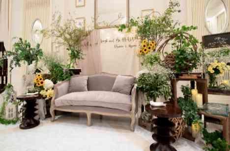アットホームに、楽しく披露宴も過ごしたい! テーブルを置いてゲストと遠くなるより、誓い距離で楽しめるよう、そんな想いから、ソファーのお席で装飾をしました。 お二人も、ゲストの皆様もアットホームにカジュアルに楽しく過ごして頂けました。