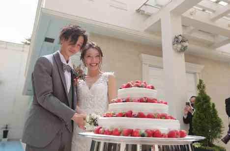 披露宴中にガーデンに移動してケーキ入刀