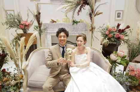 お花お打合せの際に、春ですが秋色が好きと伺いましたので、パンパスなどのくすみ色を多く取り入れてオシャレな装飾が完成しました。 結婚式当日はゲストの皆様からおふたりらしいねとお声掛けをされており、とても嬉しそうな新郎ご新婦様が印象的です。 メイン席をソファタイプにされていたので、メイン席兼フォトスポットとなりゲストの方々とたくさんお写真をお撮りすることができました。